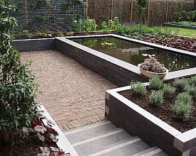 - sierbestrating, natuursteen en muurelementen;